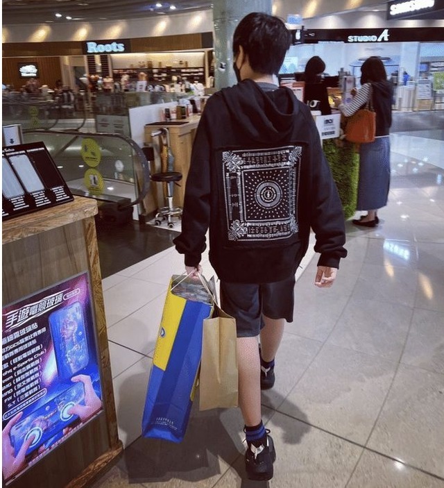 Kimi和妈妈一起去购物,还帮她提购物袋。真是个小暖男。