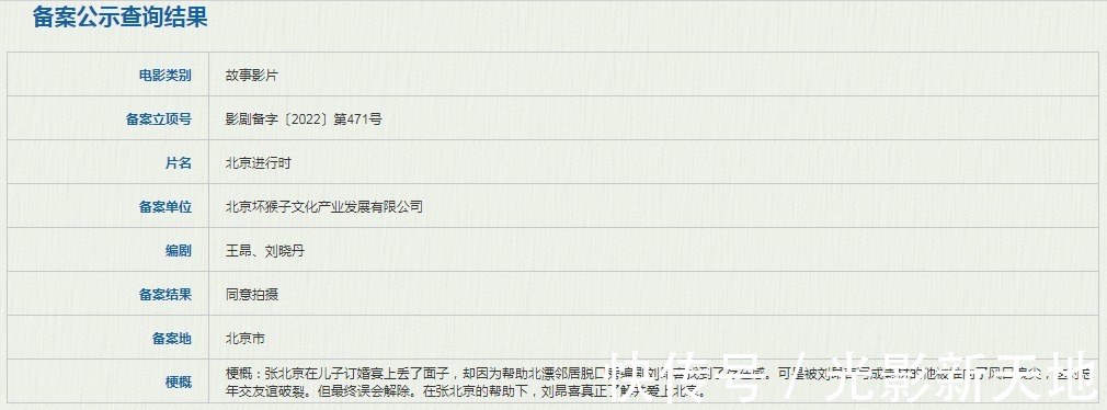 一方面,《北京进行时》显示的备案单位,也就是出品方为北京坏猴子文化产业发展有限公司,也就是宁浩的公司。近年来宁浩除了自己导演作品外,监制、出品的作品都不差,从《我不是药神》到今年春节档的《奇迹·笨小孩》都取得了不错的口碑和票房成绩。所以,尽管《北京进行时》剧情看起来很一般,但到了宁浩手上可能就会“化腐朽为神奇”。