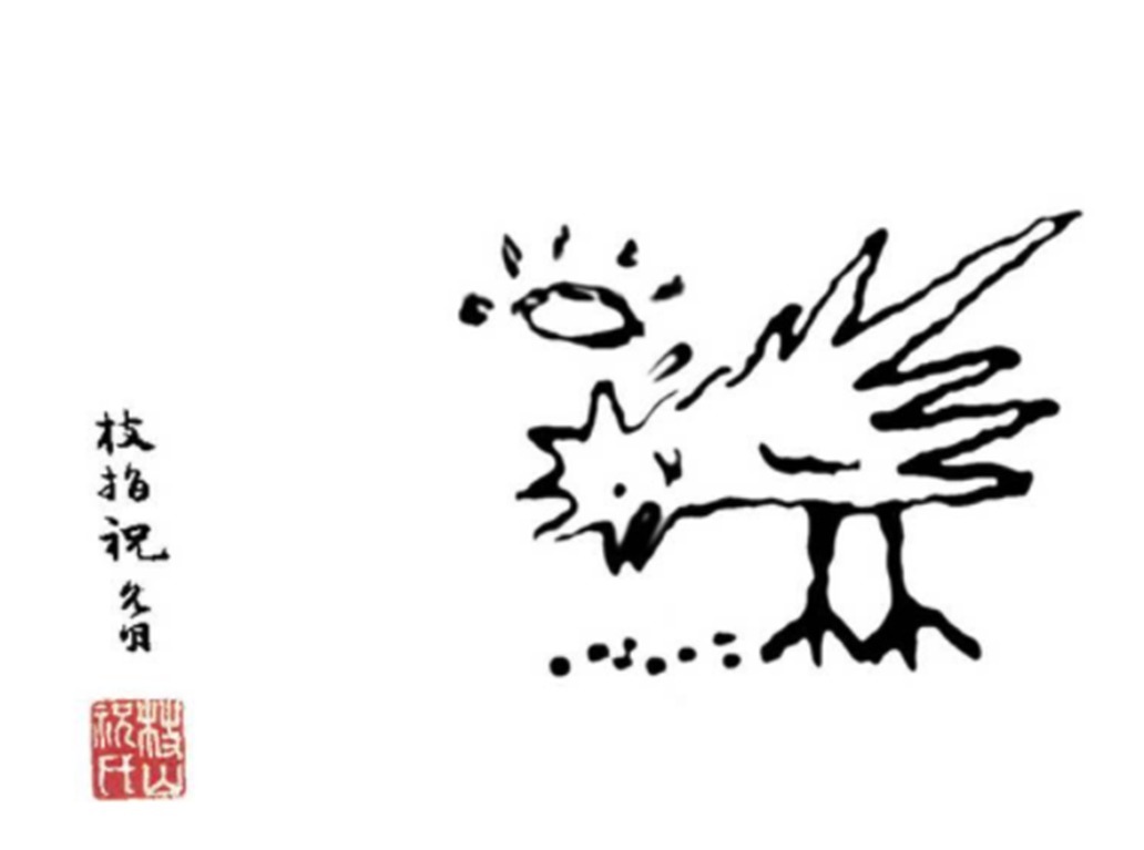 各位读者对陈百祥的印象可能只是《唐伯虎点秋香》中的这名贱贱的祝枝山,以及他在电影中的这副墨宝——冠绝古今的《小鸡啄米图》了。