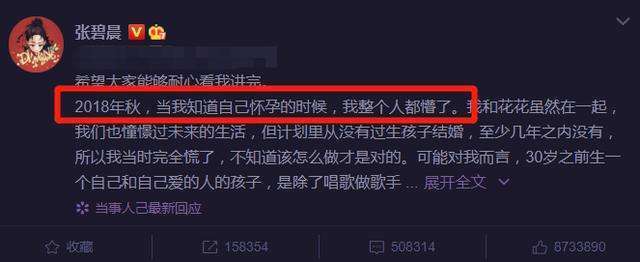 不过好景不长,张碧晨就和乐坛内另一“怪才”歌手华晨宇来了一波惊喜,发博承认两人共有一个孩子,并且表示不会结婚,但会共同抚养。