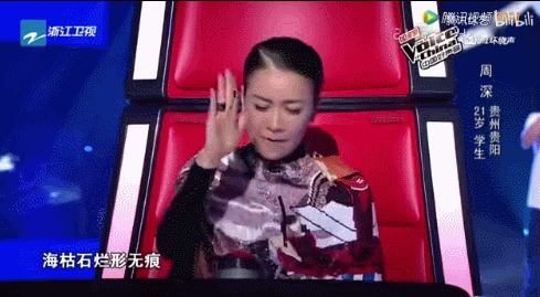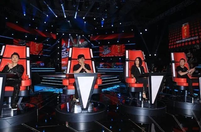 每当四位导师听到自己心仪的声音时,就当即拍下胸前硕大的红色按钮,随后旋转转椅转向舞台,看到学员真面目。