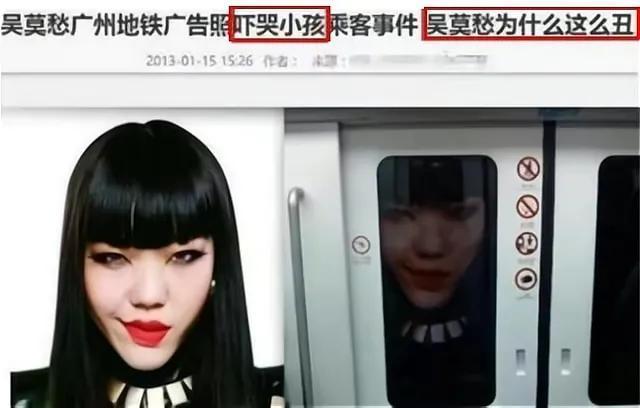 当年,吴莫愁在地铁里的一张巨幅海报成了她陷入舆论的导火索,只见这张海报留着厚厚的刘海,长着厚厚的嘴唇,面相很“凶”地盯着地铁里的每一位过客。