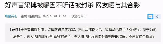 如今,梁博又一次在名利复杂的娱乐圈里消失了,希望当他再次回归时,能够为歌迷带来更好听的音乐。