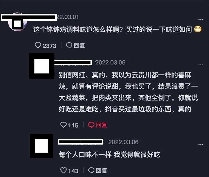 有网友在评论区表示,桃子姐卖的钵钵鸡料包味道很差,