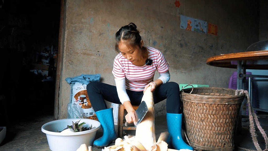 除做美食之外,她也经常在视频中展现一些平时做农活的场景。