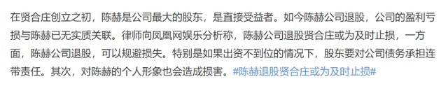 根据法律规定,陈赫作为曾经最大的股东,直接受益者,虽然已经退股亏损与其无关,但出资不到位要承担连带责任,并且对陈赫的个人形象也造成损害。不过看着陈赫一片岁月静好的样子,损害形象什么的,他似乎早已经不在乎了。