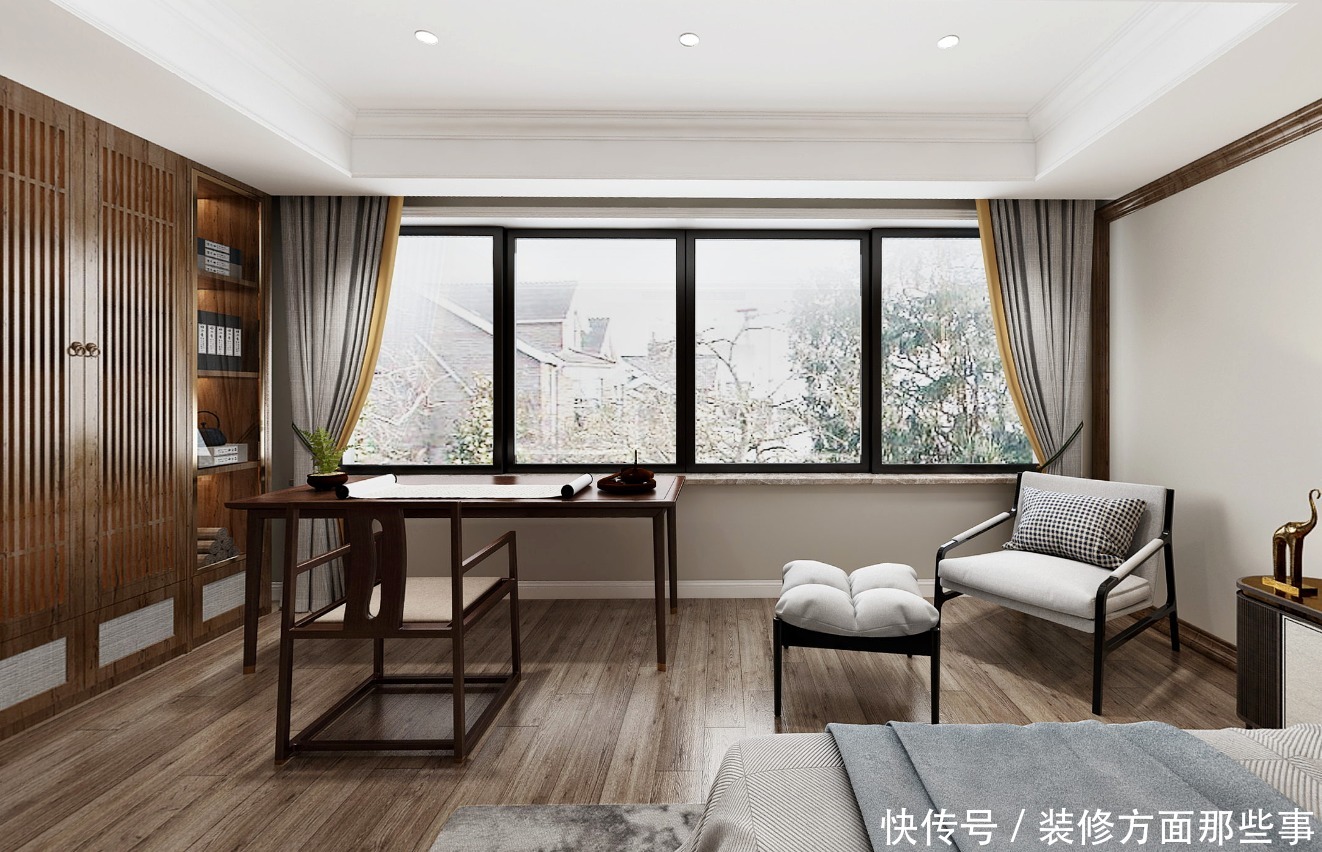 四面采光,阳光透过窗户弥漫到室内深处,每一隅角落都让人感到温暖,临窗而设书桌,一方砚台、一张宣纸、执笔作“画”,静心修身,做一个内心沉静之人。