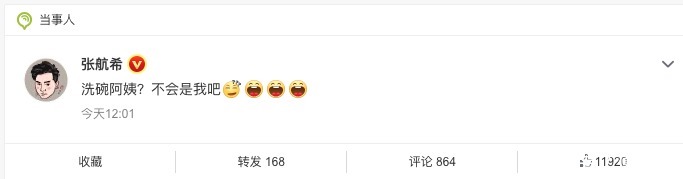 而针对《向往的生活》被传请洗碗阿姨的传闻,导演张航希发文:「洗碗阿姨?不会是我吧」,直接辟谣节目组雇阿姨洗碗的传闻。