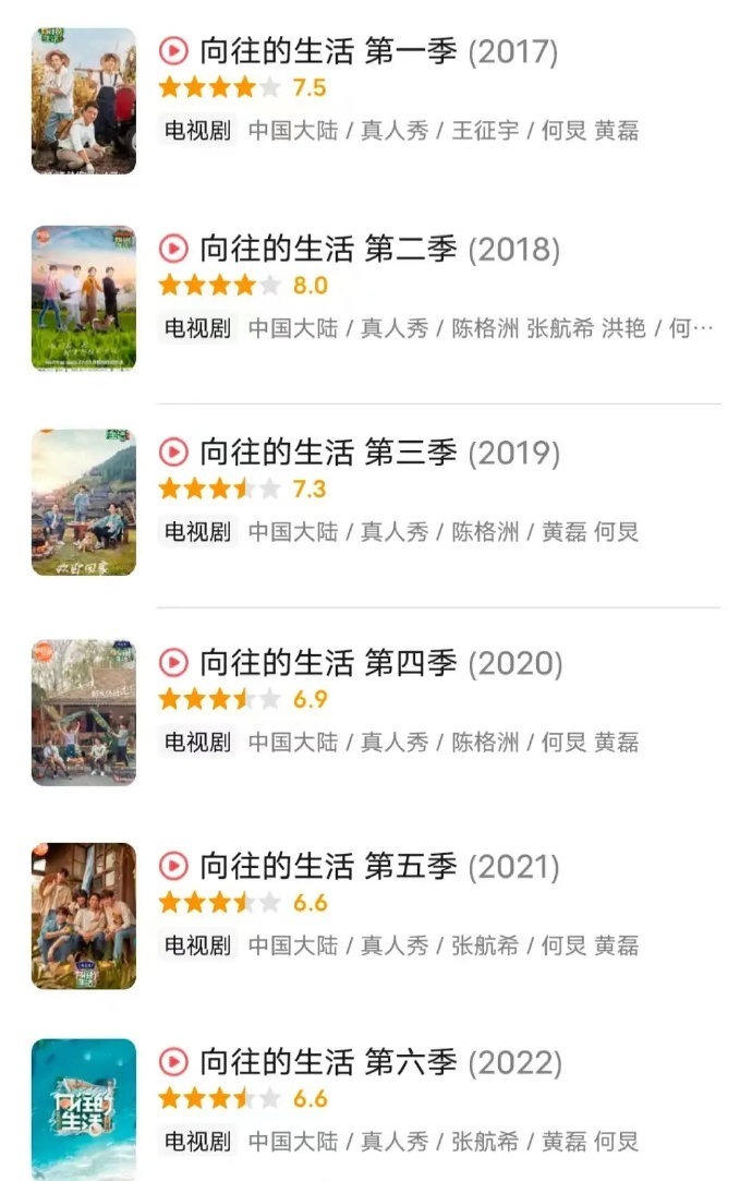 然而,这档节目录制到第六季的时候,很多人都吐槽节目太过无聊,这样的生活太安逸,嘉宾除了吃喝、聊天,并没有什么新意,完全没有看下去的欲望。相比第一季,后面的几季算是彻底没了看头,一开始嘉宾还能够靠着去地里扒玉米获取食材,现在完全都不用干活了。其实从豆瓣的评分也能看出一二来。