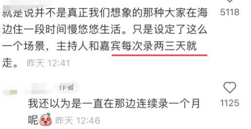 另外,还有人爆料,向往的生活并不像观众们想的那样,嘉宾在那里住一段时间,专门为了拍摄!他们其实是拍个两三天就会离开,之后再返回继续拍摄!