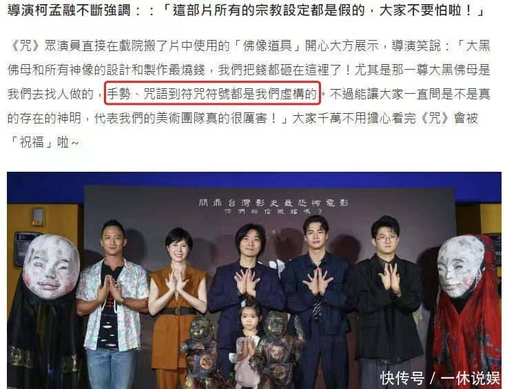 对此,影片《咒》的导演柯孟融则回应称,影片当中的一切宗教、咒语都是自己编的,实际上根本不存在。包括影片当中的那尊佛母像都是专门为了影片而制作的,并让大家放心,不用担心看完电影被“祝福”。